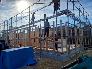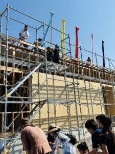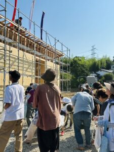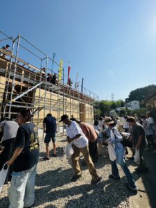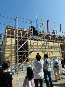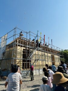 最後に「棟木(むなぎ)」と呼ばれる横木を取り付けるまでの工程のことです。