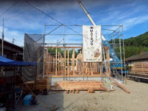 鞍手郡で新築工事中のS様邸は、先日、『棟上げ』が行われました。