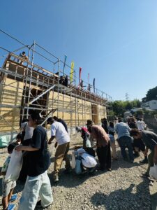 棟が上がった後には、「餅まき」を行いました☆