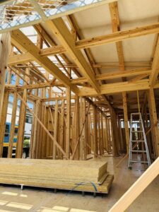 棟上げとは、土台の上に建物の骨組み部分である柱、梁、屋根を組み、