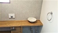 TOTOネオレスト:MATSUO.の創作棚です。お施主様が選んだ照明が雰囲気出てます♪