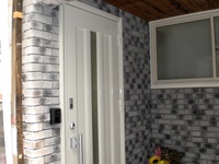 ドア廻りはシックな色のレンガ張り
