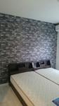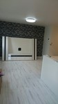 リビング。おしゃれなレンガ調クロスを一面に貼っています。