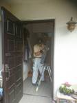 福岡県古賀市:リクシル、玄関・勝手口用横引き収納網戸 しまえるんですα を玄関ドアに取付