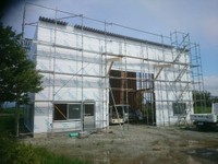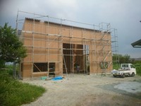 建築期間は約2ヶ月ほど。壁は 木造用耐力面材の構造用ハイベストウッドを使用しています。