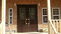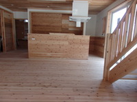 総ブリックレンガを使い重圧感たっぷりの洋風外観に 自社で加工した ひのきを使った玄関まわりで 自然素材の和洋風のお家に仕上がりました。