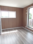 おしゃれなクロスのお部屋。部屋を仕切れるようになっています。