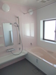 ピンクのバスルーム。淡いピンクでリラックスできそうですね☆