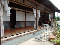 施工前 引き戸を全部外し新しいアルミサッシに入れ替えます。→